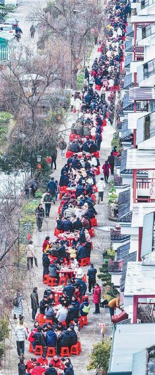 浙江建德市莲花镇戴家村,当地宇宙与外地游客回味百家宴。