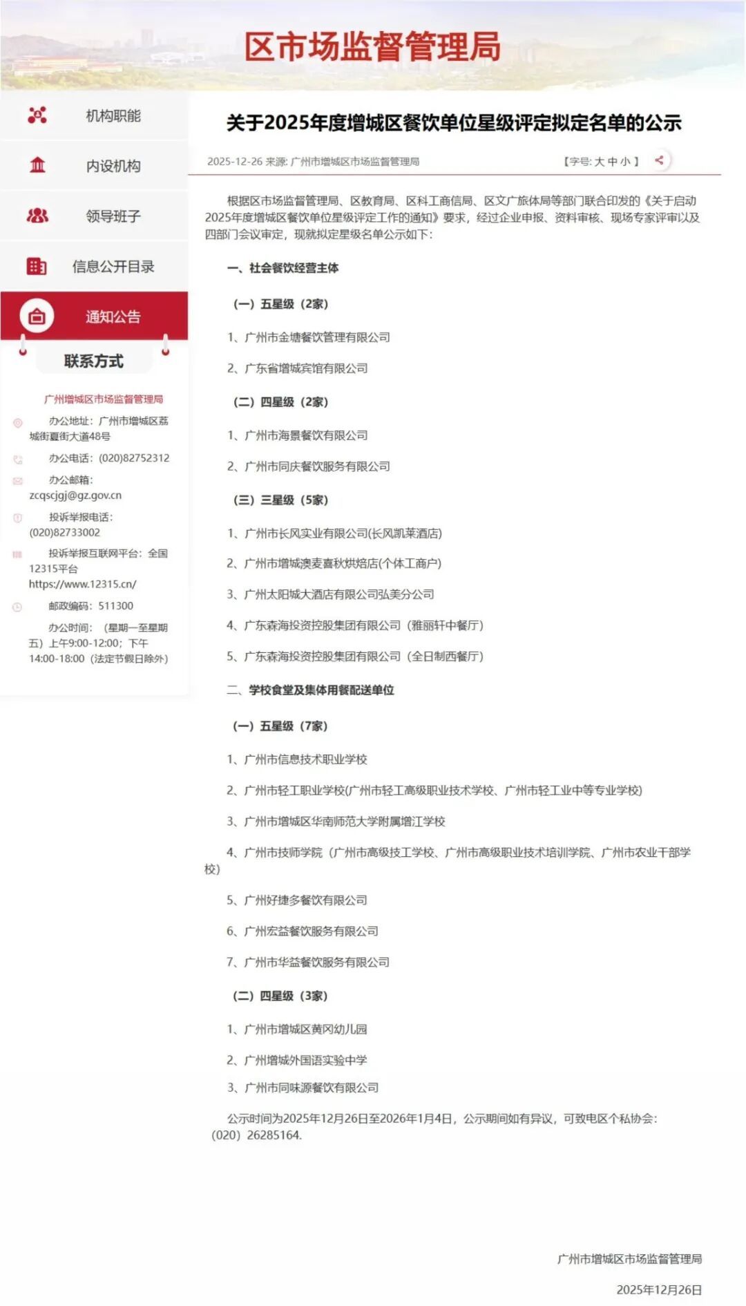 近日,广州市增城区市集监督惩办局公布了2025年度增城区餐饮单元星级评定甘休,我校科教城校区食堂凭借优异的玄虚发扬,在全区学校食堂中脱颖而出,以名轮番一的得益胜利获评“五星级”食堂,成为全区仅有的7家五星级学校食堂之一!