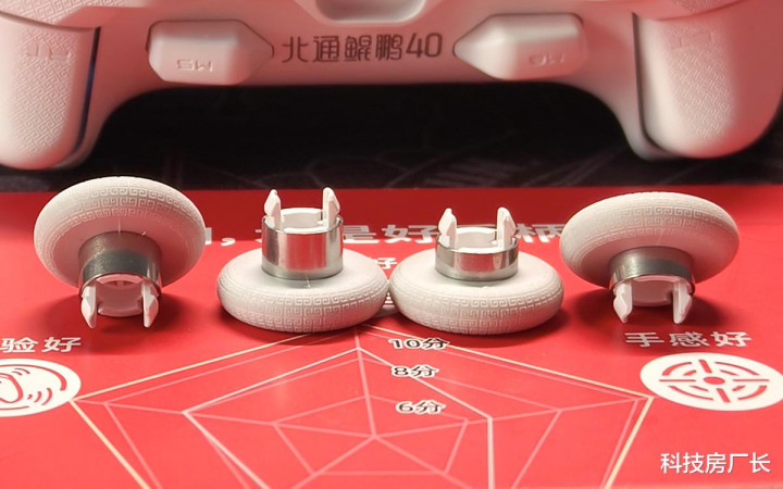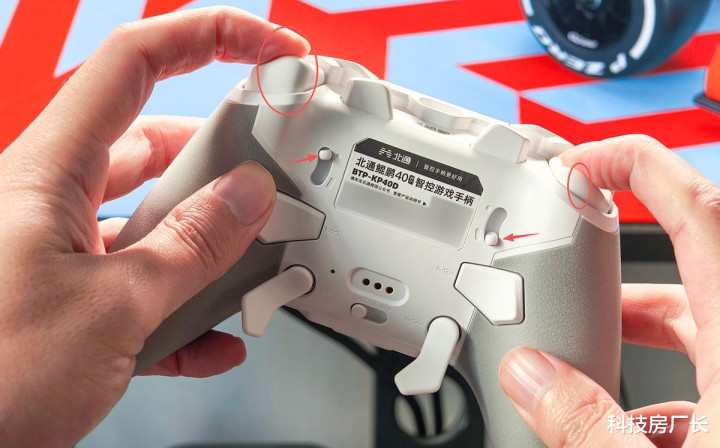 说到操控,北通鲲鹏40(御铠白)玩出了花,比如传统手柄的摇杆阻尼是固定的,但北通首创双限位阻尼可调TMR摇杆。你没看错,摇杆阻尼也能调,还搭载的行业首个双限位结构,两个摇杆下面是旋钮,大致完结25档超精确的齿轮诊疗。就像调相机的光圈环,每拧动一格“咔哒”一声,每档精确诊疗2.4gf阻尼感,你可以从关怀的30gf调到千里稳的90gf,何况还能保荆棘尼环不位移,让手感长期一致。