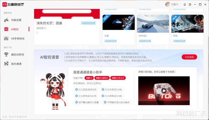 硬件方面齐很可以,想要它更好用好玩,还要搭配北通游戏厅软件使用。最有兴致的是手柄还撑持AI语音,在游戏时只需说出“你好,通通”或长按AI键,就能叫醒语音助手。然后就可以对它下教导,撑持一句话包含多个敕令,比如认为震感不够,灯光也不够炫,径直说:“把扳机转动调到4档,合手把灯调成流光,指点灯调成红色。识别又准又快,陡然就帮你惩办,澈底无用退出游戏开放软件。