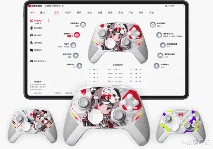 此外,拨出十字键就能取下磁吸透明面盖,更换为AI挂念面壳。通俗说即是每个面壳齐有独属的自界说键位、灯光、扳机模式等竖立,换壳如换“手柄”不异,自动切换成那套竖立,多游戏玩家确定极端可爱。