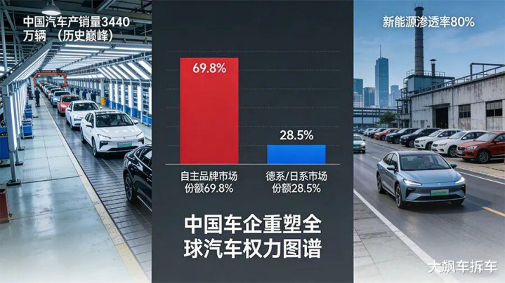 从数据上看,中国汽车产销量冲上3440万辆的历史巅峰,而这背后最令东谈目标脉偾兴的真相是自主品牌已然运转“清场”,以近70%的国内商场份额和2100万辆的恐怖销量,透澈驱逐了外资品牌在中国躺着收获的期间。如今走在街头,每10辆新车就有7辆挂着中国自主标,结伴品牌的生涯空间被挤压到仅剩三成。