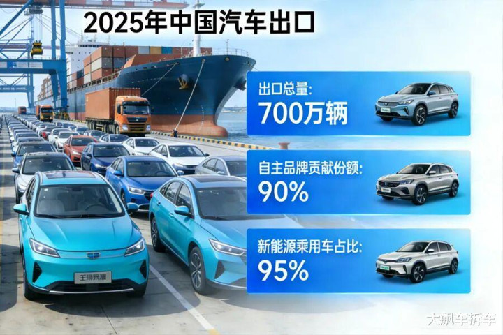 2025年中国汽车出口量暴涨至700万辆,其中自主品牌孝敬了绝大部分份额,新动力乘用车的占比平直飙升至95%以上。这一组组冷飕飕的数据是国产车最佳的“判官”。