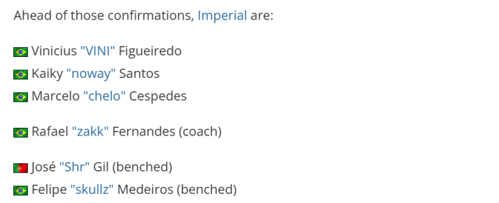 在首发威望中效率六个月后,Imperial战队已将skullz下放至替补席。
