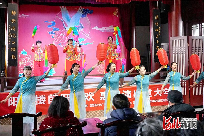 2月15日上昼,大众在正定阳和楼惠民献艺现场饰演节目。河北日报记者 王 伟摄