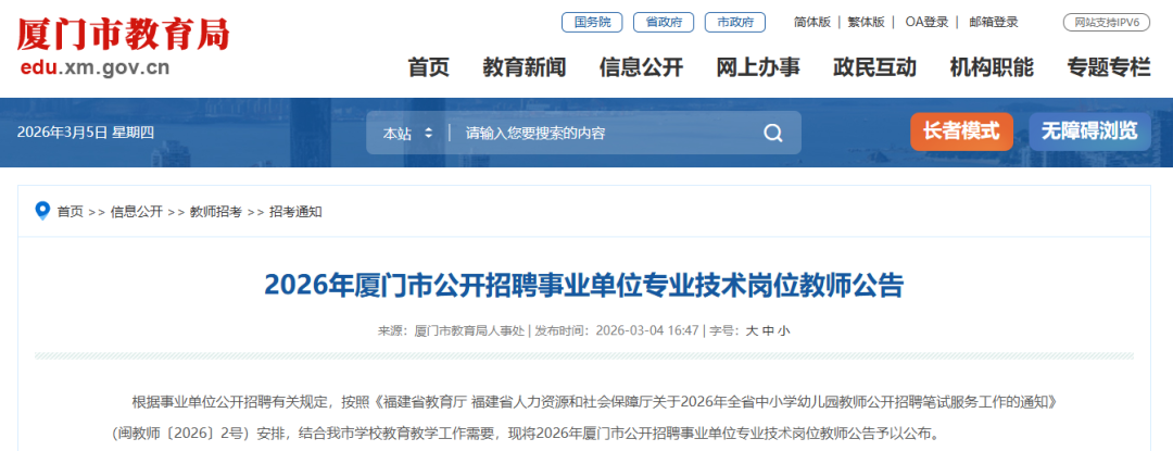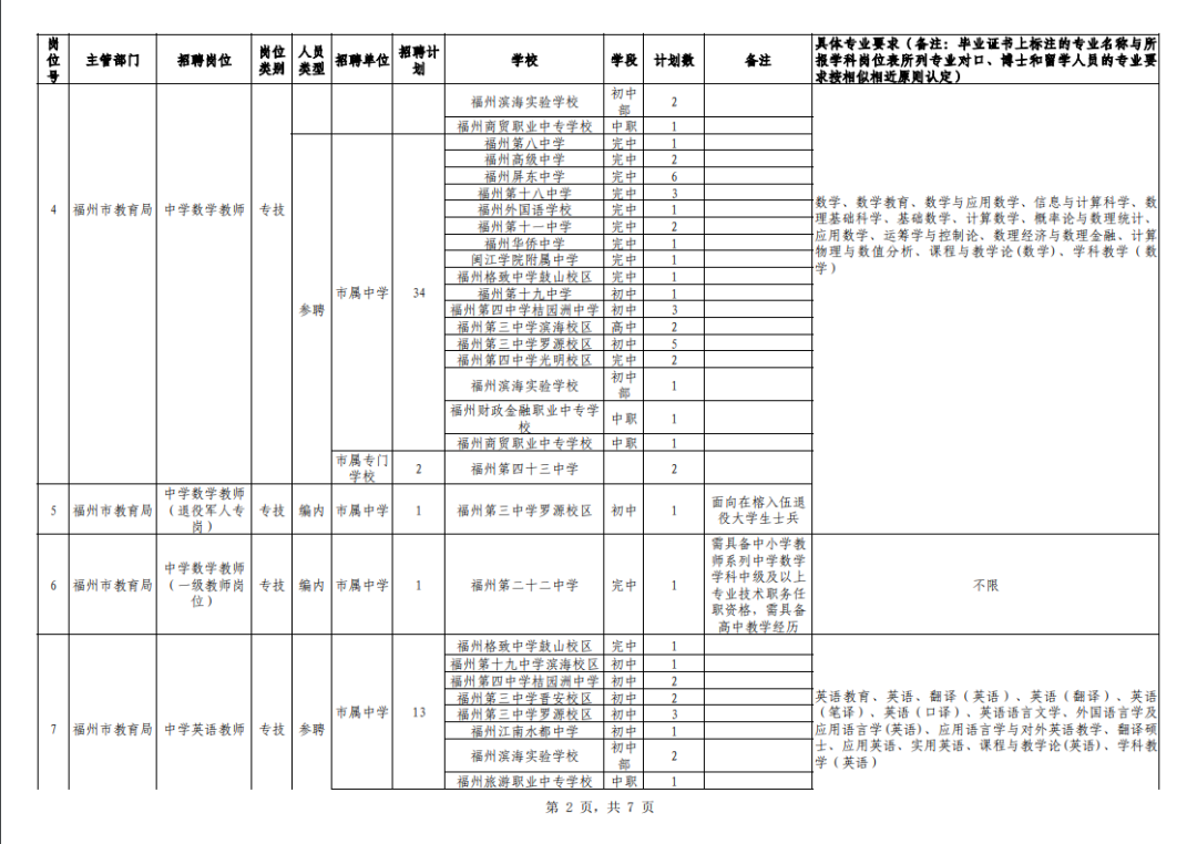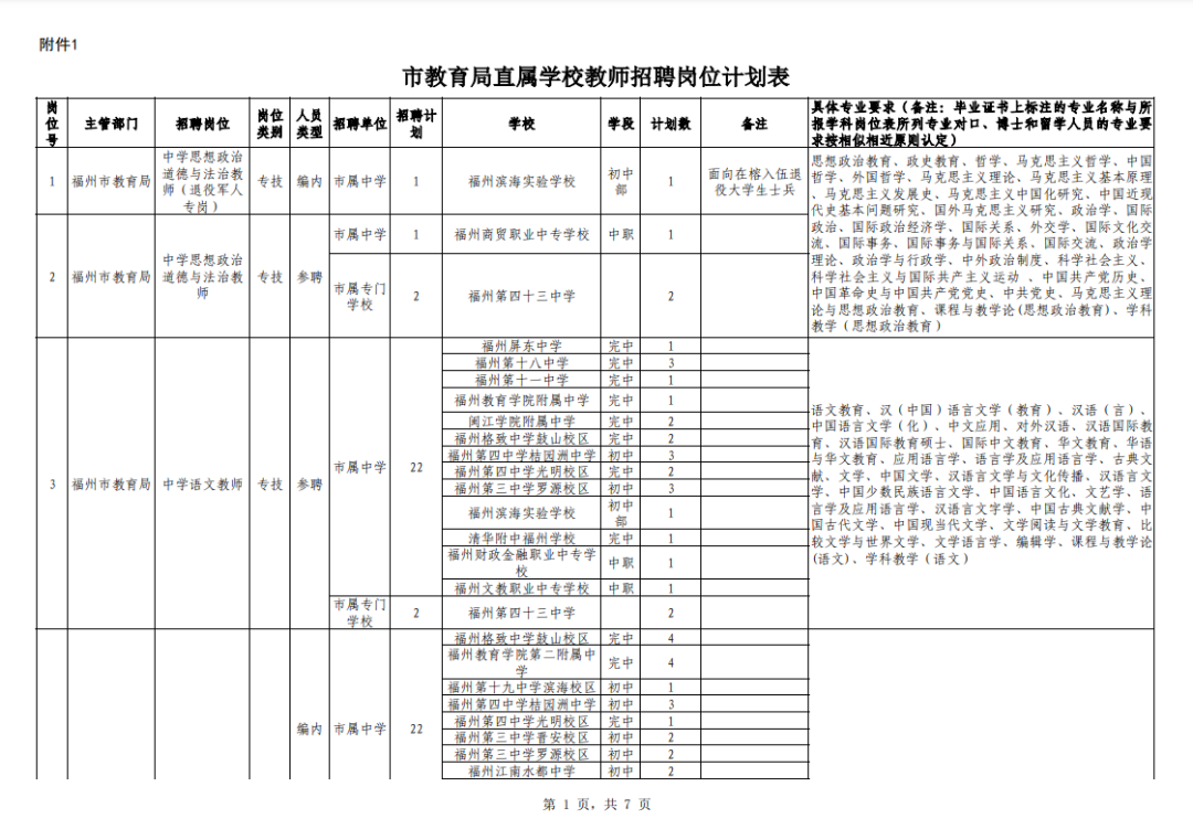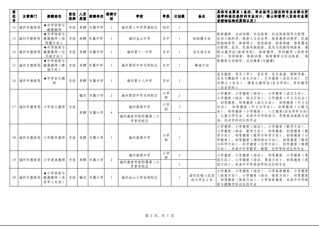 这次招聘开采退役军东谈主专岗,合适中小学涵养岗亭条目、厦门市户籍退役军东谈主或厦门市给与安置的退役军东谈主可报考。