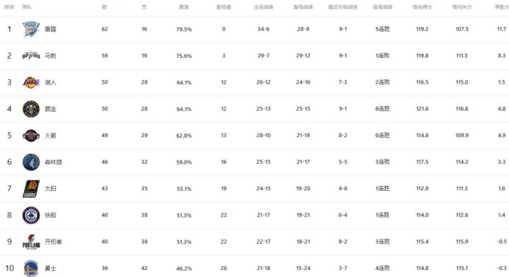 火箭升起了,现在以49胜29负名次西部第五,仅差第四的掘金&第三的湖东谈主1个胜场。
