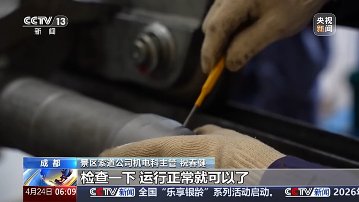 景区索说念公司机电科主宰祝春健:下一步就要把装配好的吊厢,放到这个表示上试启动,搜检一下,启动肤浅就不错了。