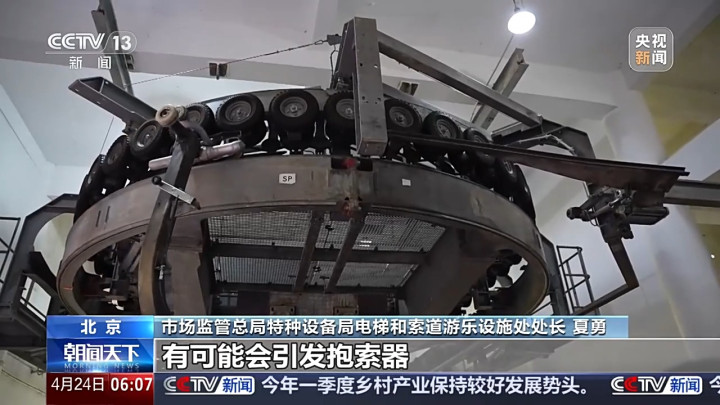 国度客运架空索说念安全监督考试中心常务副主任张晓文:这个位置叫捕捉器。抱索器在肤浅情况下,不会和捕捉器发生任何关涉。可是在一些极点情况下,当吊厢由于风不详其他原因发生横向舞动的时代,跟捕捉器就会发生碰撞。由于原先结构设想上,端部是平面,就会卡住,这是一个相比大的风险安全隐患。