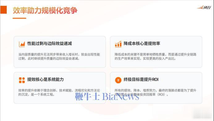 在前边讲到的常态服从,对咱们来说很遑急,但我讲的是服从助力界限化竞争。中间可能写到一些细节,比如作念一个作品,需要插足的资金老本、时间老本、算力老本越高,是否会获取相应的收益。如果超出的部分,等于性能多余,而性能多余的部分就会产生边缘效应,并不会加多更多的收入。降本的中枢并不是裁汰质地,而是提高服从。提效的中枢其实是擢升系统化身手,尤其是统共这个词制作过程里边全系统化服从擢升。